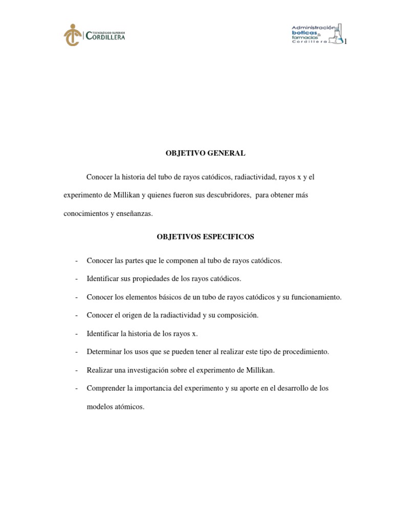 - Identificar sus propiedades de los rayos catódicos.