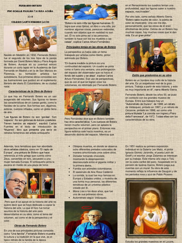 Colegio santo domingo savio “Botero no solo infla las figuras humanas. Él color es impecable. Una vez me dijo,
