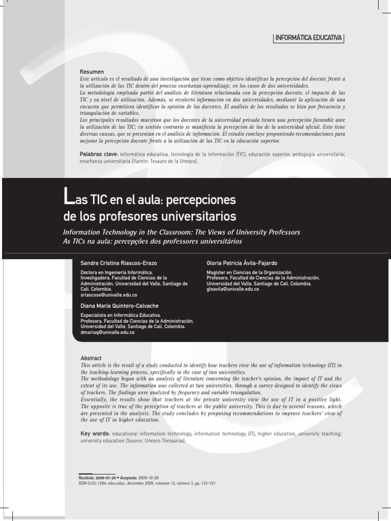 Palabras clave: informática educativa, tecnología de la información (TIC), educación superior, pedagogía universitaria;