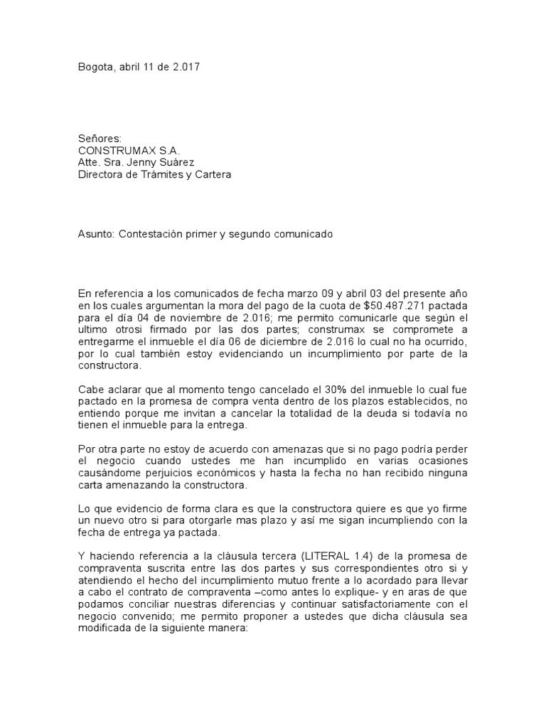 Asunto: Contestación primer y segundo comunicado
