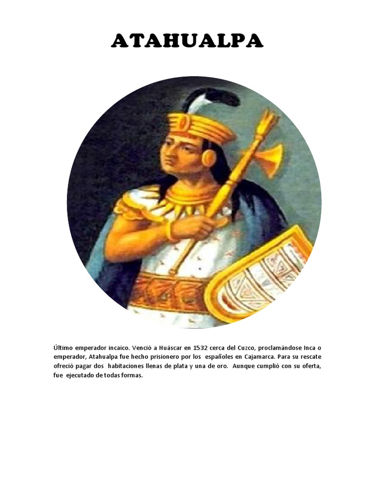 Último emperador incaico. Venció a Huáscar en 1532 cerca del Cuzco, proclamándose Inca o