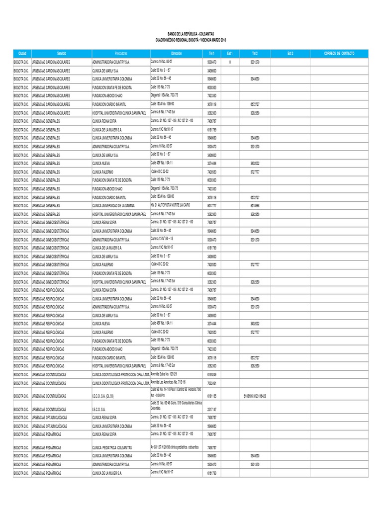 BOGOTA D.C. SERVICIOS CLÍNICAS Y/O HOSPITALES CLINICA UNIVERSITARIA COLOMBIA Calle 23 No. 66 - 46 5948660 5948650