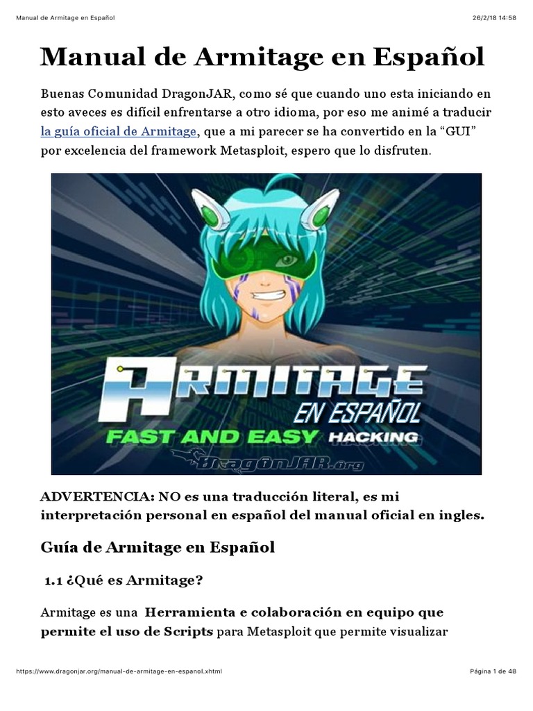 https://www.dragonjar.org/manual-de-armitage-en-espanol.xhtml Página 1 de 48