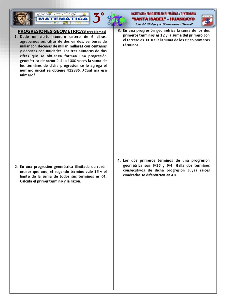 PROGRESIONES GEOMÉTRICAS (Problemas) 3. En una progresión geométrica la suma de los dos