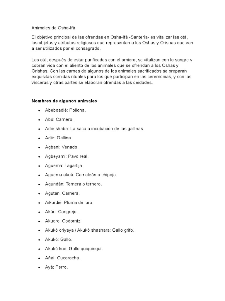 El objetivo principal de las ofrendas en Osha-Ifá -Santería- es vitalizar las otá,