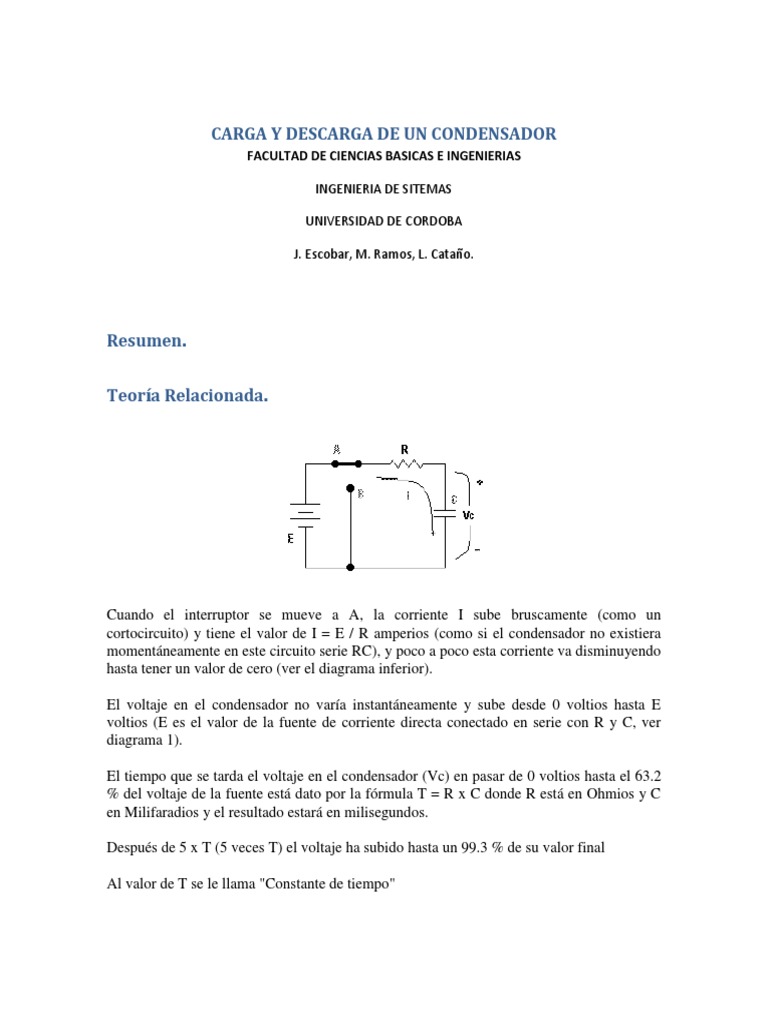 NOTA: Si el condensador había sido previamente cargado hasta un valor E, hay que