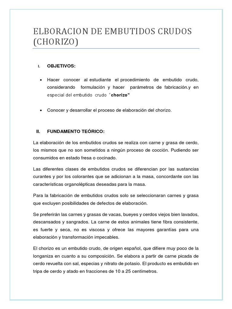 En esta práctica se demuestra la elaboración del chorizo según el