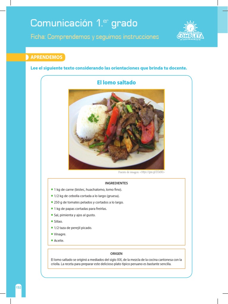 a. Mostrar los ingredientes del lomo saltado.