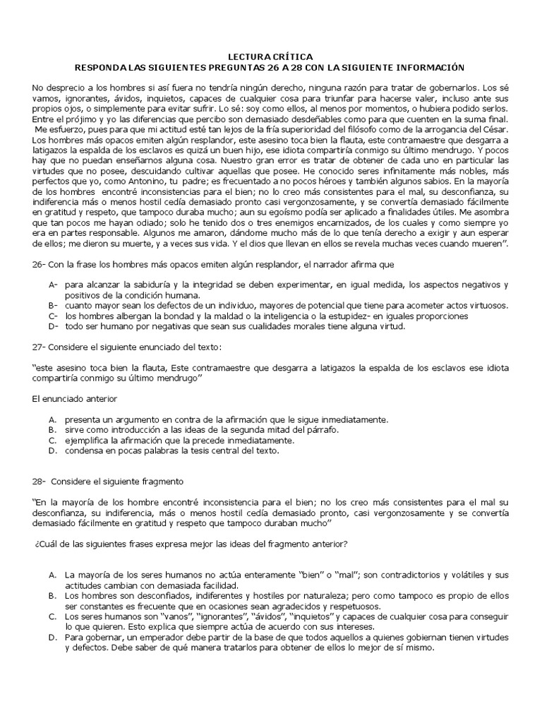 RESPONDA LAS SIGUIENTES PREGUNTAS 26 A 28 CON LA SIGUIENTE INFORMACIÓN