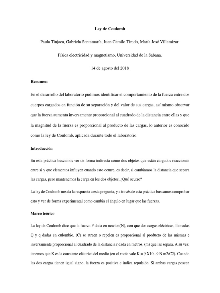 como la ley de Coulomb, aplicada durante todo el laboratorio.