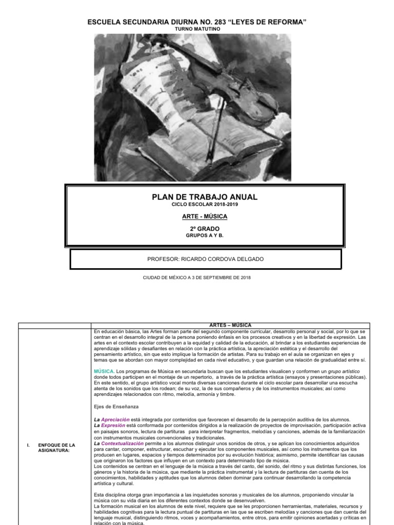 PLAN DE TRABAJO ANUAL 2018-2019 ARTES- MÚSICA Página 2