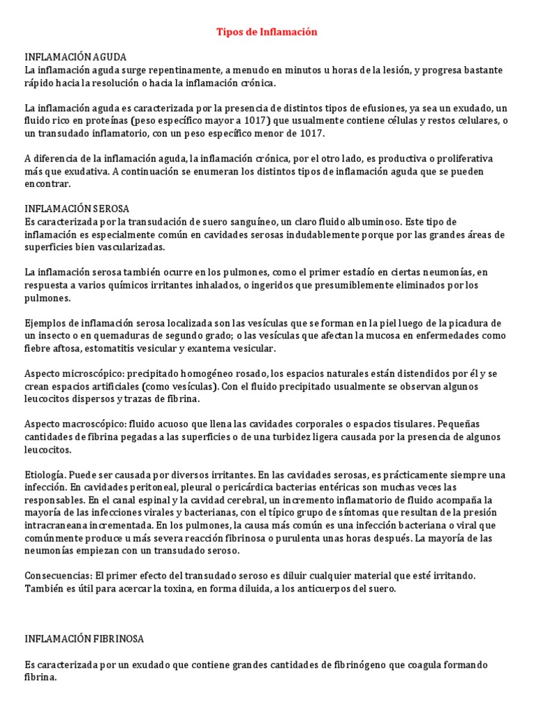 más que exudativa. A continuación se enumeran los distintos tipos de inflamación aguda que se pueden