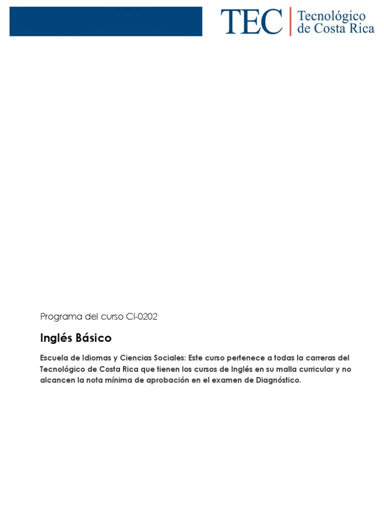 Tecnológico de Costa Rica que tienen los cursos de Inglés en su malla curricular y no
