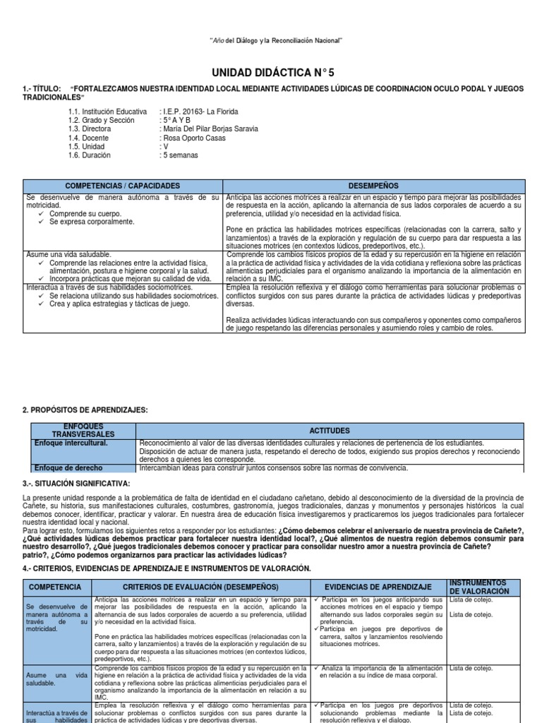 1.- TÍTULO: “FORTALEZCAMOS NUESTRA IDENTIDAD LOCAL MEDIANTE ACTIVIDADES LÚDICAS DE COORDINACION OCULO PODAL Y JUEGOS