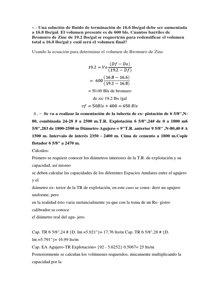 a 16.8 lbs/gal. El volumen presente es de 600 bls. Cuantos barriles de