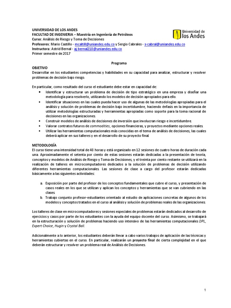 Curso: Análisis de Riesgo y Toma de Decisiones