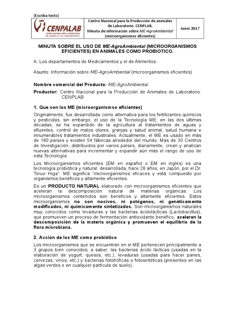 MINUTA SOBRE EL USO DE ME-AgroAmbiental (MICROORGANISMOS