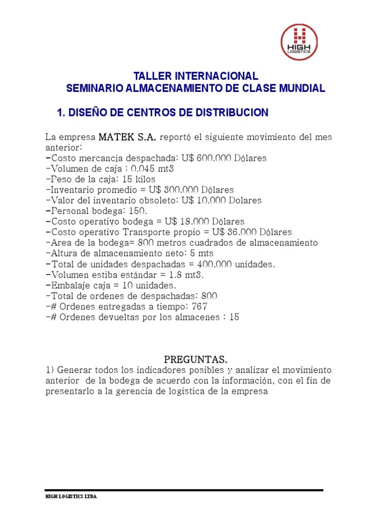 -Costo operativo bodega = U$ 18.000 Dólares