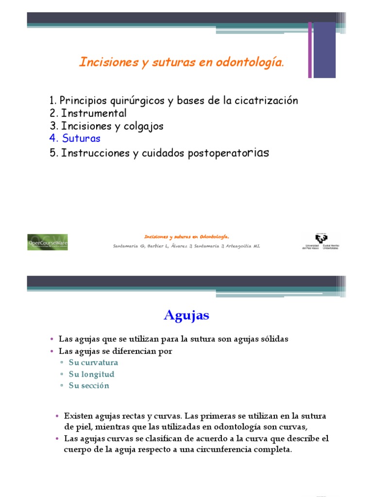 • Existen agujas rectas y curvas. Las primeras se utilizan en la sutura