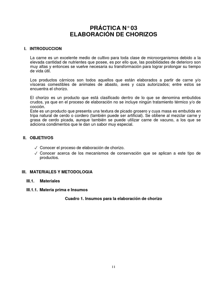 Práctica 1. Elaboración de Chorizos Crisóstomo (2017)
