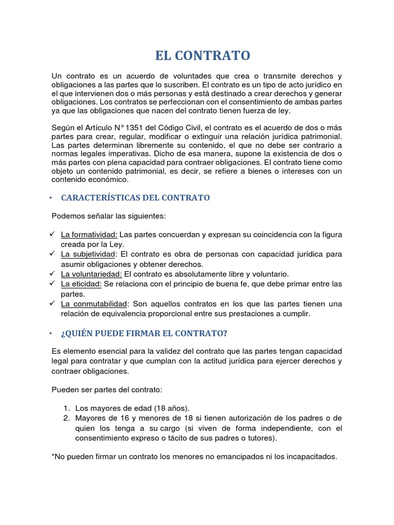 obligaciones a las partes que lo suscriben. El contrato es un tipo de acto jurídico en