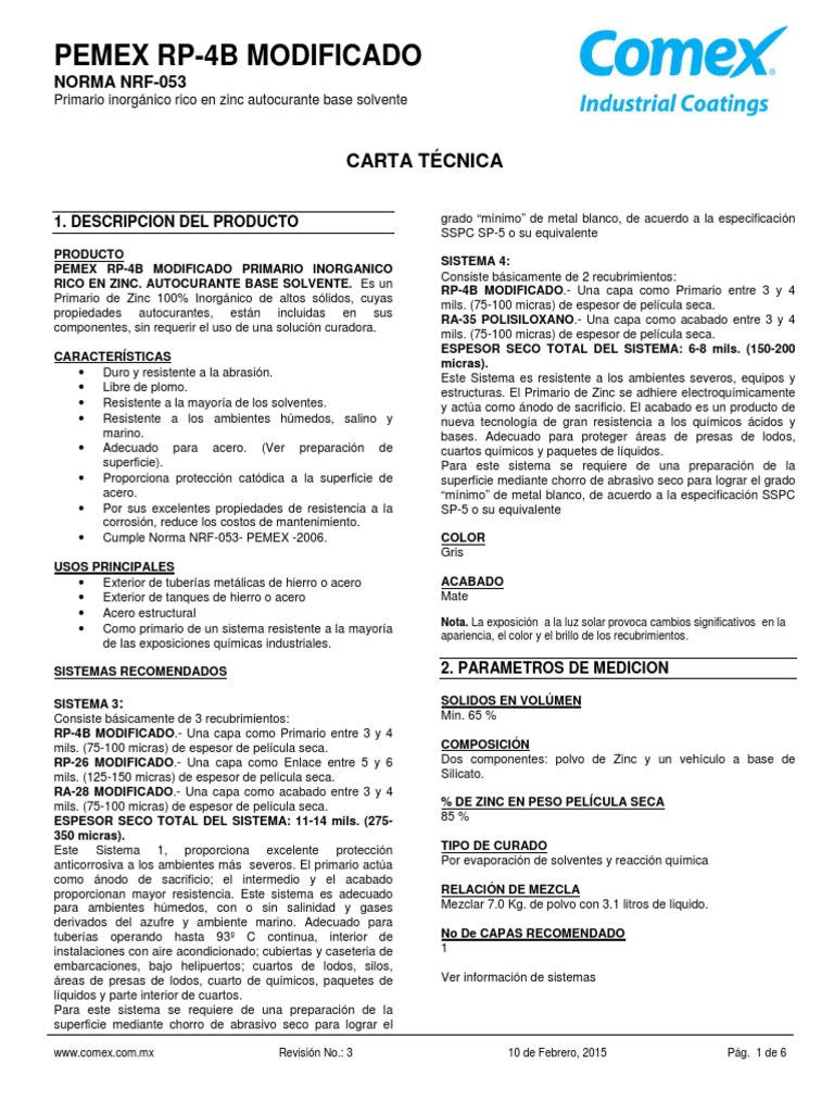 www.comex.com.mx Revisión No.: 3 10 de Febrero, 2015 Pág. 1 de 6