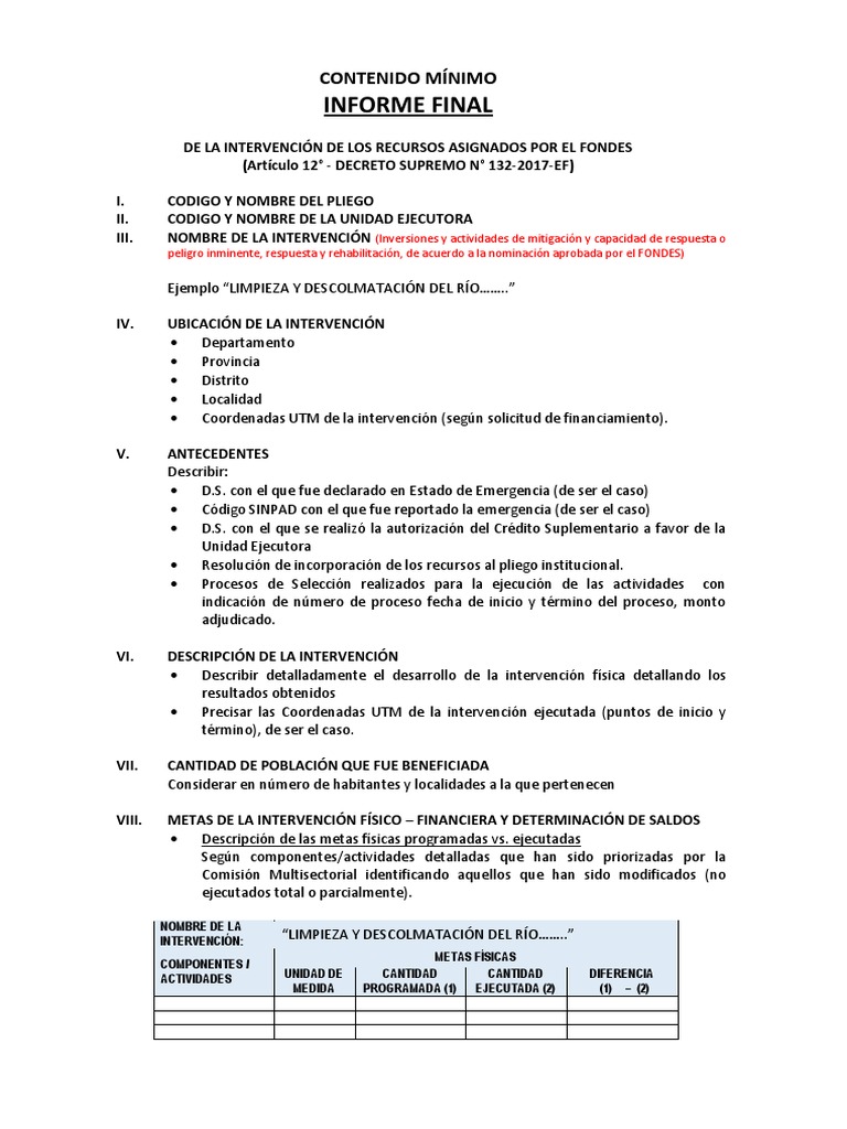 peligro inminente, respuesta y rehabilitación, de acuerdo a la nominación aprobada por el FONDES)