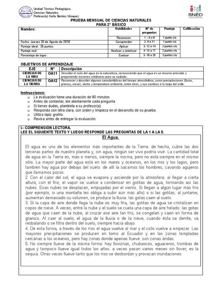 PRUEBA MENSUAL DE CIENCIAS NATURALES