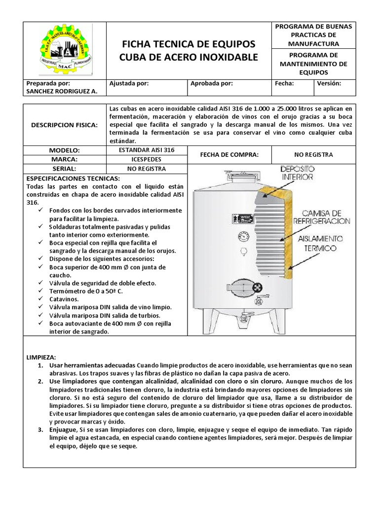 FICHA TECNICA DE EQUIPOS MANUFACTURA