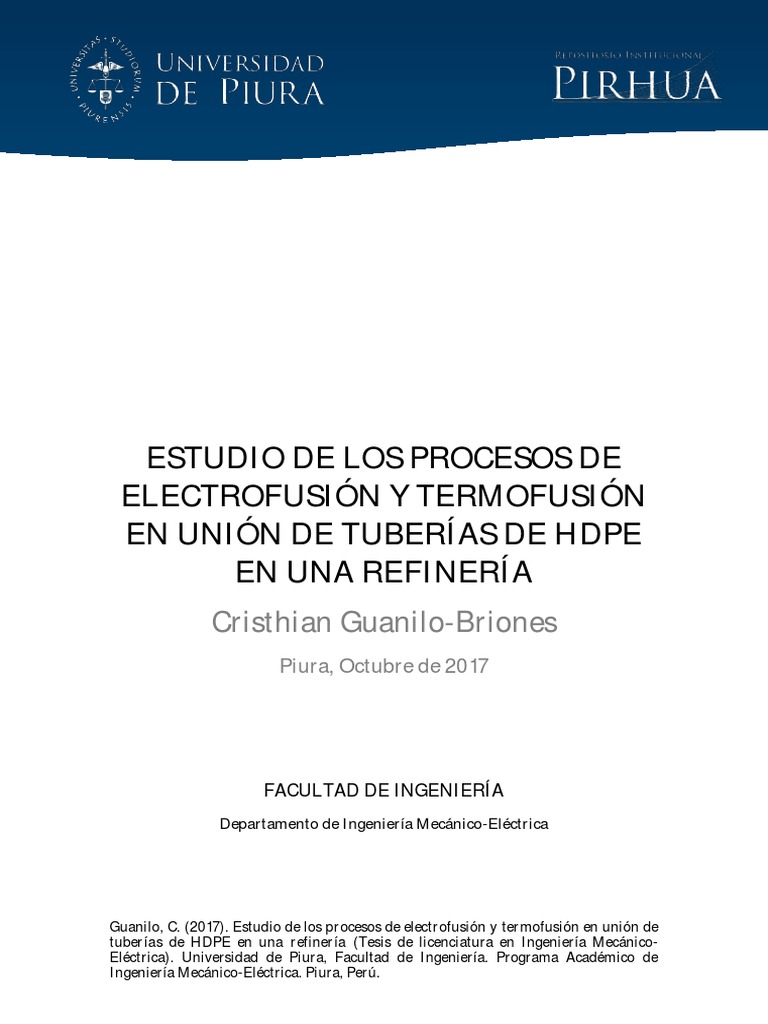 Guanilo, C. (2017). Estudio de los procesos de electrofusión y termofusión en unión de