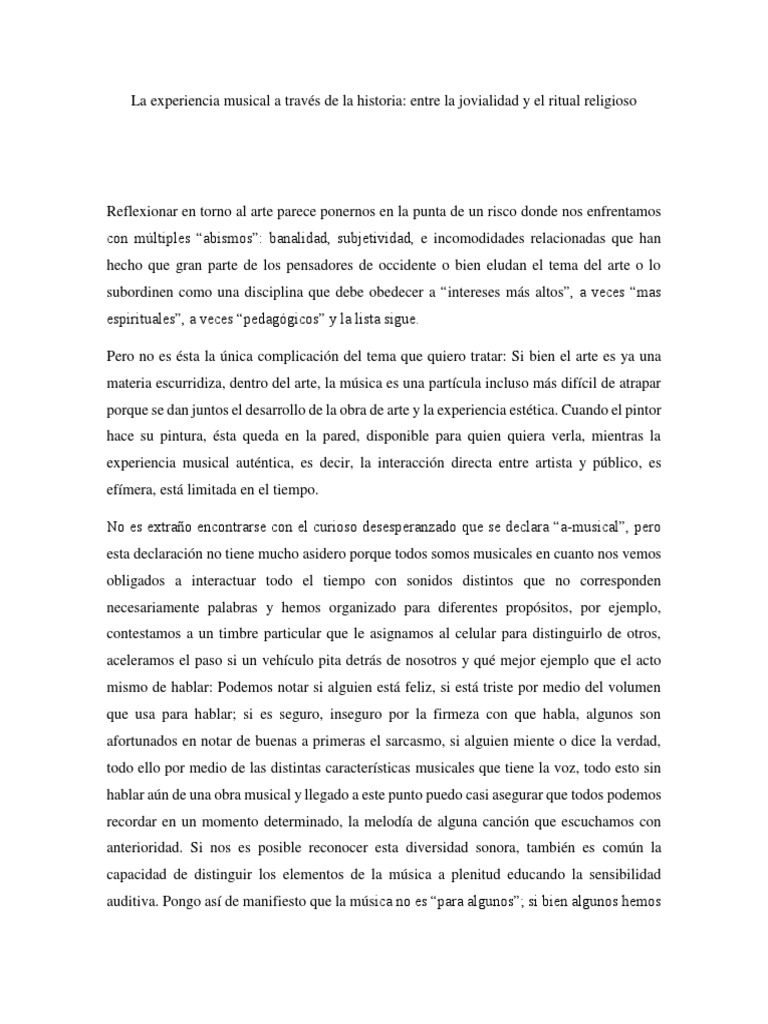 La experiencia musical a través de la historia: entre la jovialidad y el ritual religioso
