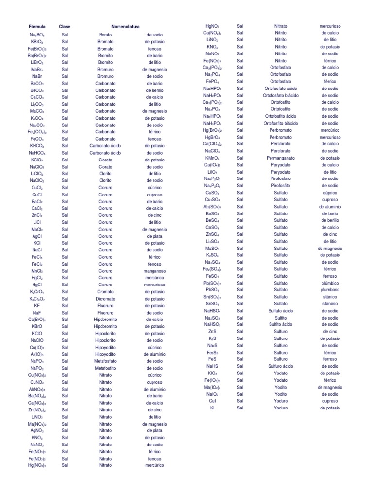 Ca(BrO)2 Sal Hipobromito de calcio Na2SO3 Sal Sulfito de sodio