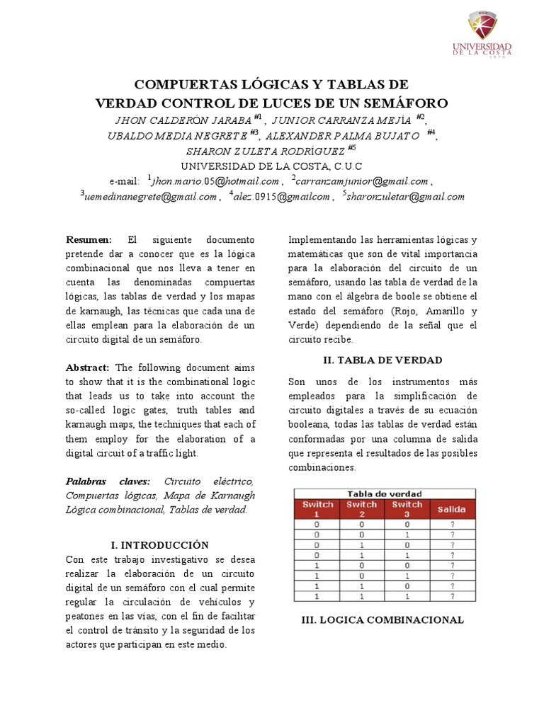 cuenta las denominadas compuertas semáforo, usando las tabla de verdad de la