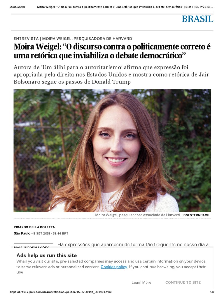 09/09/2018 Moira Weigel: “O discurso contra o politicamente correto é uma retórica que inviabiliza o debate democrático” | Brasil | EL PAÍS Br…