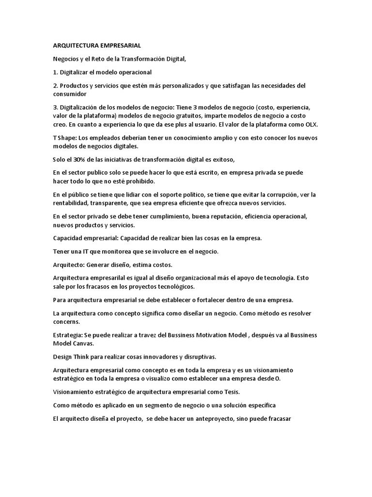 Arquitectura empresarilal es igual al diseño organizacional más el apoyo de tecnología. Esto