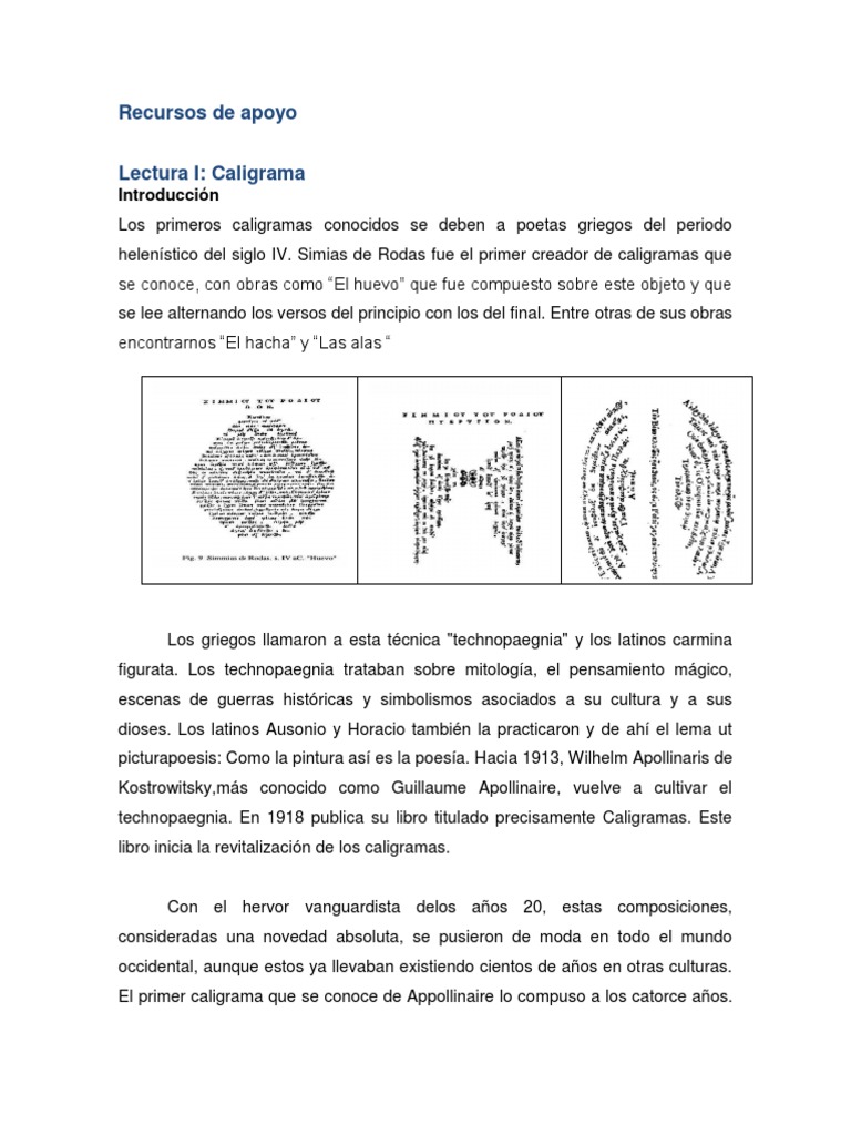 Los primeros caligramas conocidos se deben a poetas griegos del periodo