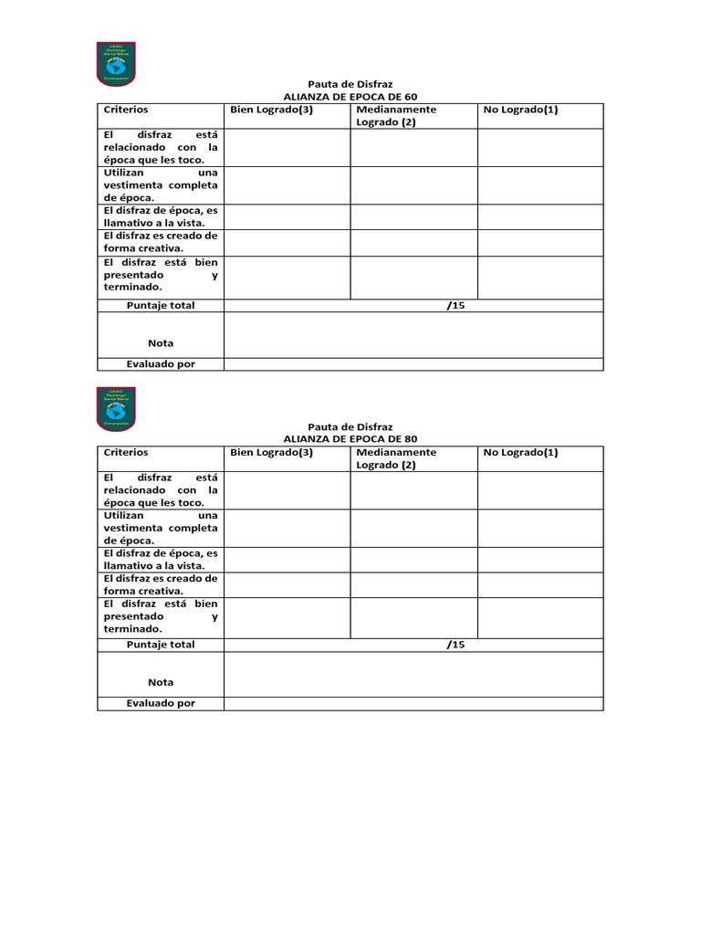 Criterios Bien Logrado(3) Medianamente No Logrado(1)