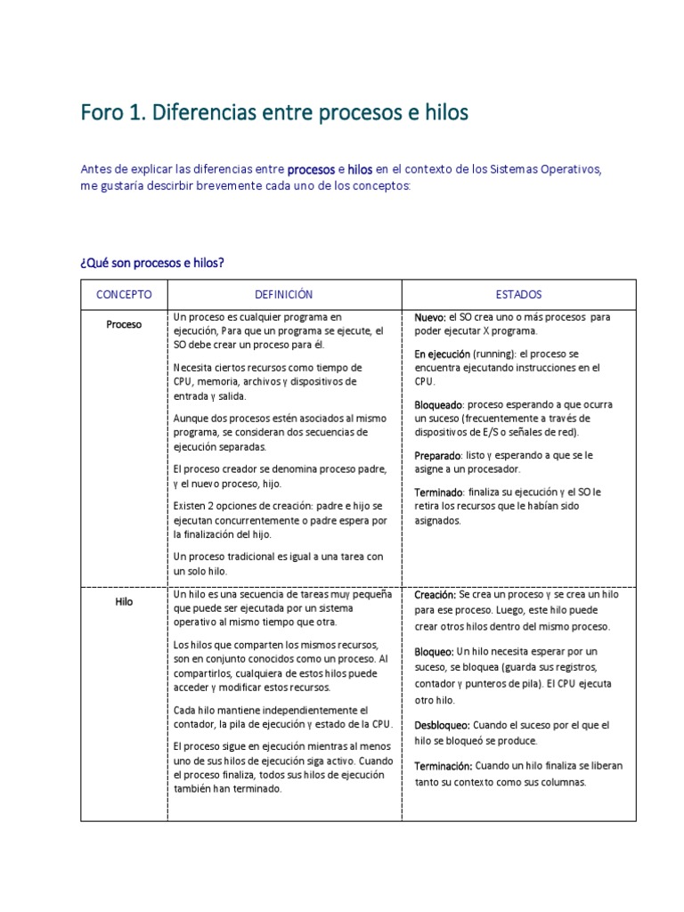 Antes de explicar las diferencias entre procesos e hilos en el contexto de los Sistemas Operativos,