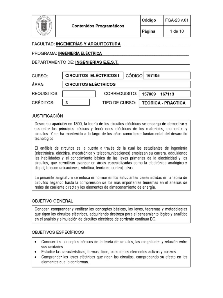 CURSO: CIRCUITOS ELÉCTRICOS I CÓDIGO: 167105