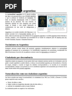 derechos y deberes. La nacionalidad argentina está regulada por medio de la Ley