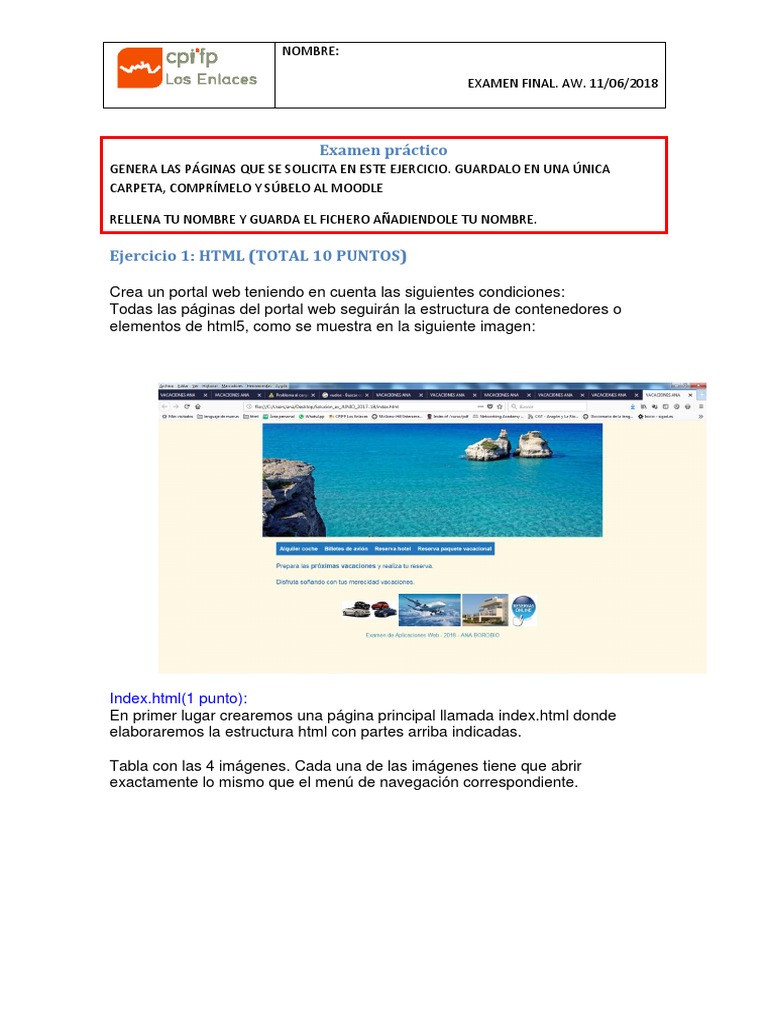 HTML , CSS (se valorará el uso de posicionamiento) ,2 puntos.