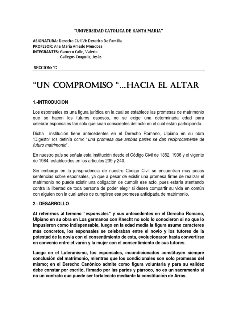 Los esponsales es una figura jurídica en la cual se establece las promesas de matrimonio