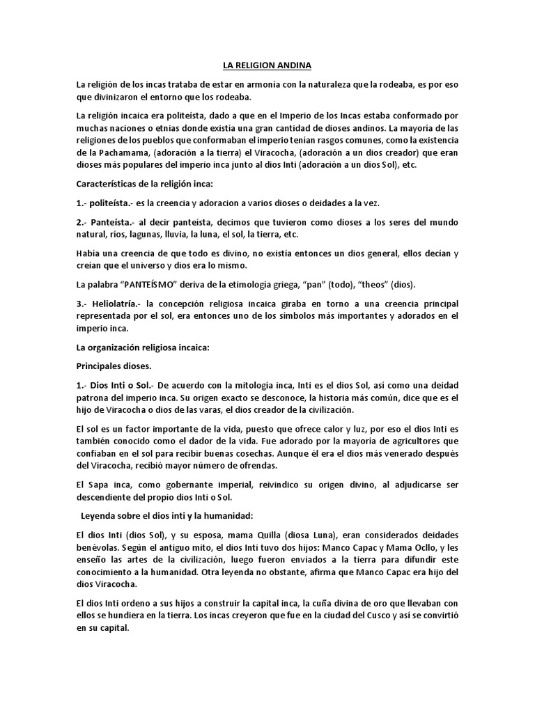 muchas naciones o etnias donde existía una gran cantidad de dioses andinos. La mayoría de las