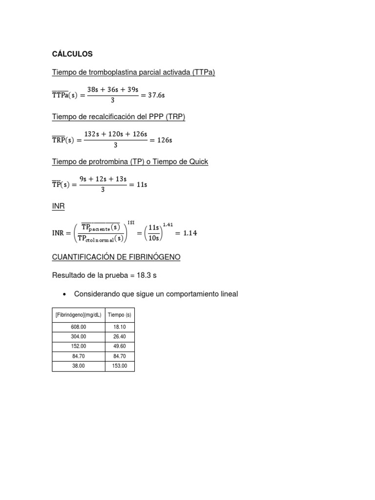 Tiempo (s) = −0.1847[Fibrinógeno] ( ) + 110.21