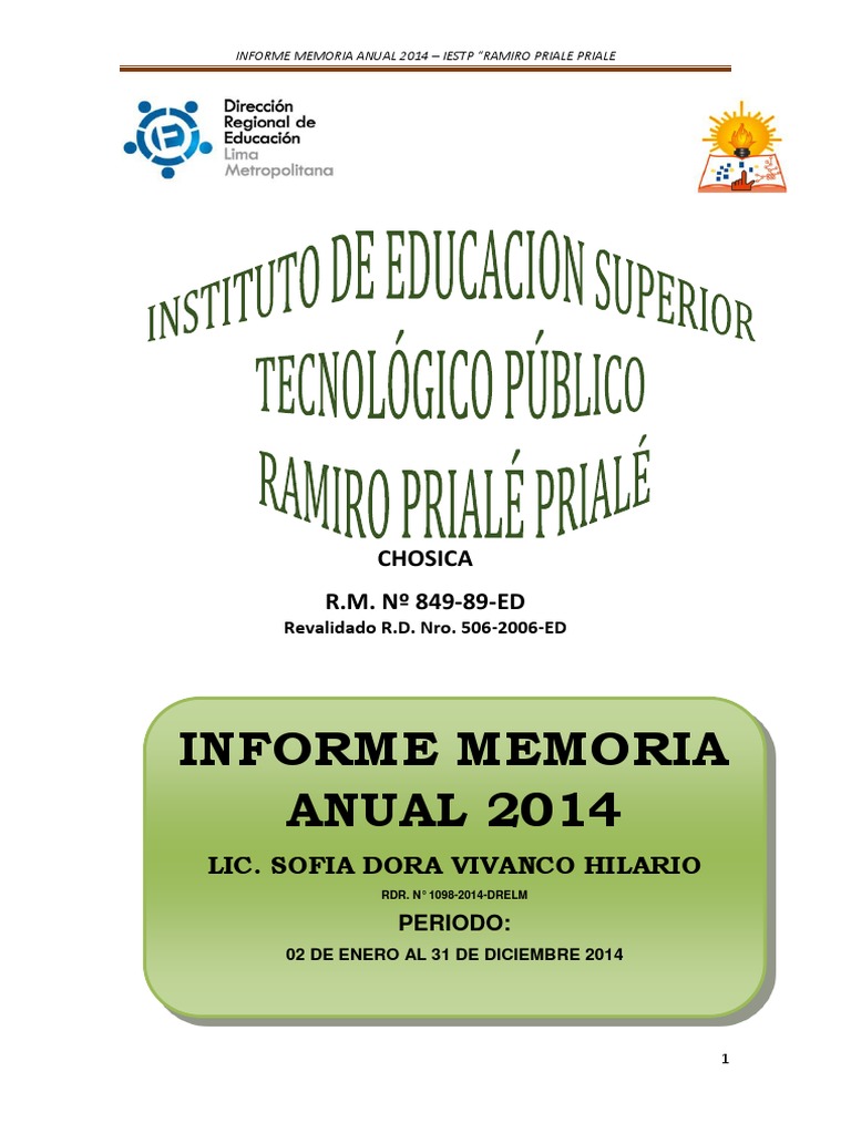 INFORME MEMORIA ANUAL 2014 – IESTP “RAMIRO PRIALE PRIALE