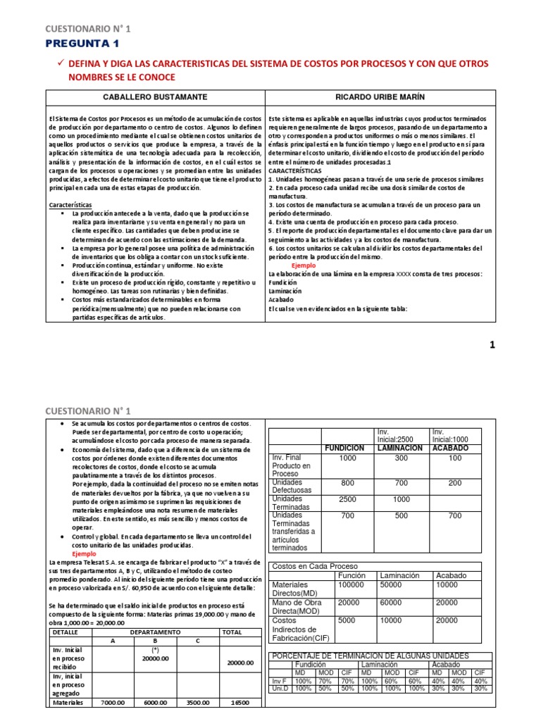 producidas, a efectos de determinar el costo unitario que tiene el producto 1. Unidades homogéneas pasan a través de una serie de procesos similares