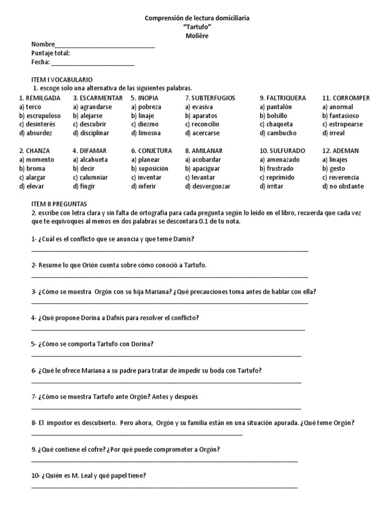 10. ¿Cuál fue la razón en cual el príncipe se dio cuenta que Tartufo era un estafador? explica