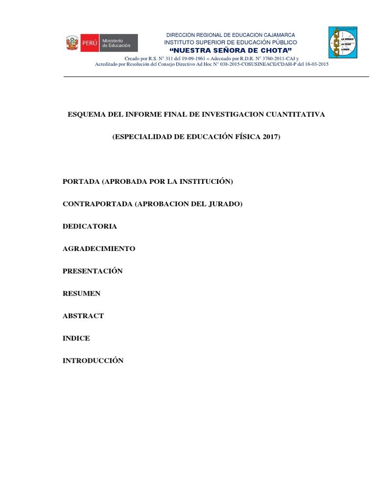ESQUEMA DEL INFORME FINAL DE INVESTIGACION CUANTITATIVA