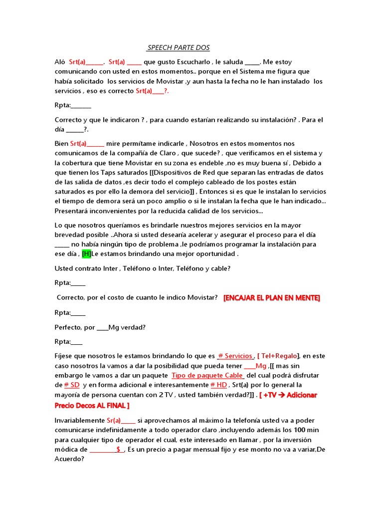 Aló Srt(a)______. Srt(a) _____ que gusto Escucharlo , le saluda _____. Me estoy