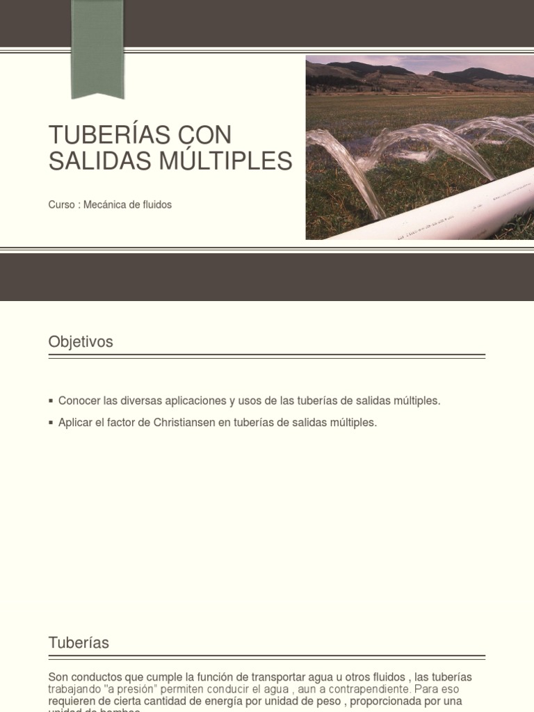 Aplicar el factor de Christiansen en tuberías de salidas múltiples.